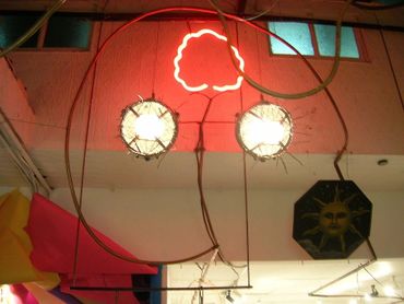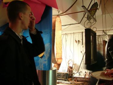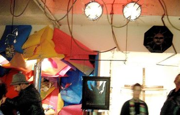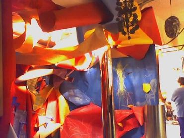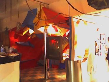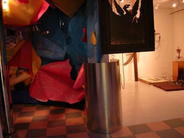 4) Self-contained small room along with Jame P.s painted tubes suspended by wire.