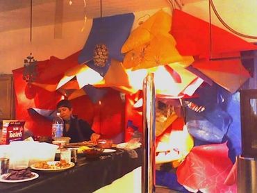My friend and fellow Artist contemporary John Wire, invited me to display in what was at the time Base Gallery's Annual Atrium Show. I was gifted by John several large rolls of colored paper. Originally, this was to be another DKNG show since I was busy creating and promoting that collaboration project.