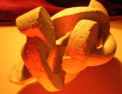Clay, paper, and mixed materials. All of my sculptures are either in collections or lost to time and too many moves.