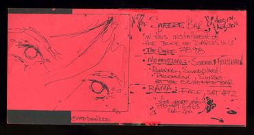 Since Red catches the eye the most, I went through a phase where all of my promotional flyers were printed in red by my old friend Michael Sierra.
