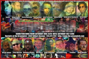 Superwhat? is actually inspired by the collage table displayed that was made by my friend, the late John Possman. I wanted to assemble several Artists together to create and showcase works based on the theme of the Hero or the Villain.